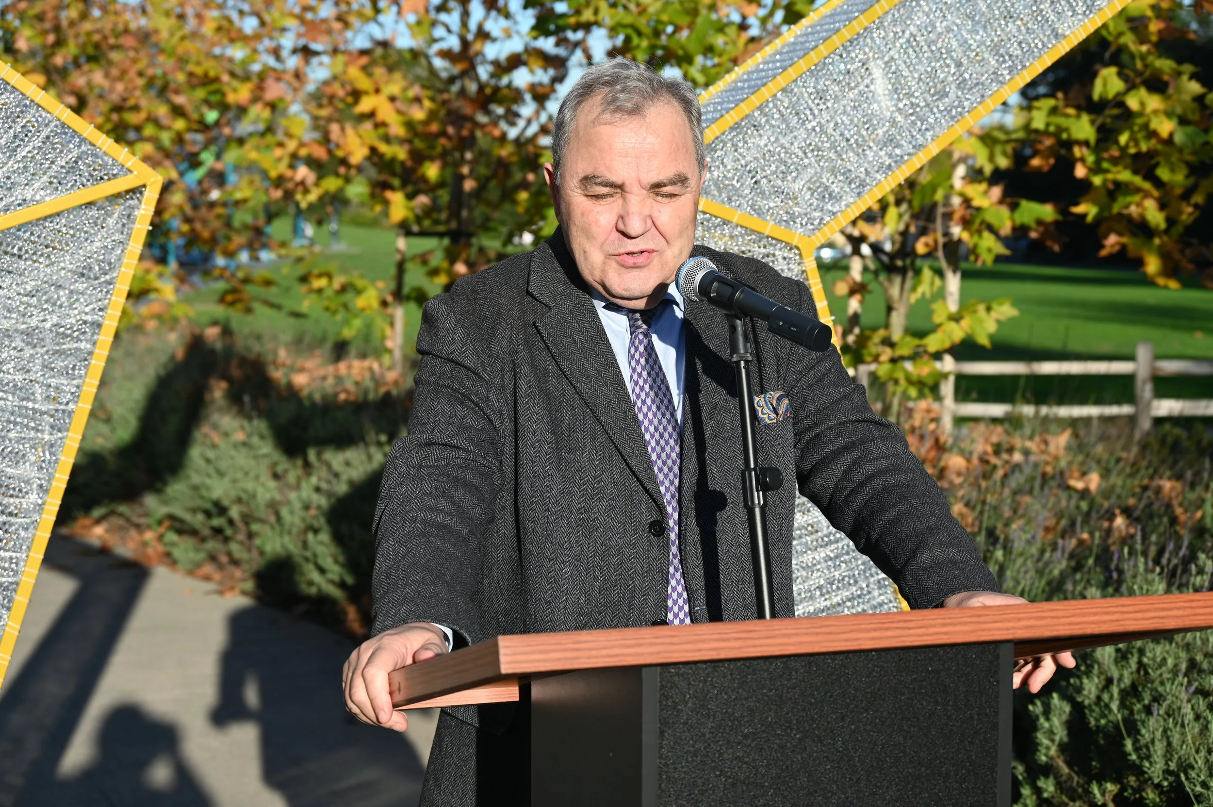 Olive Tree Plaque Dedication and Unveiling, L to R, Louis Vella Maltese Council, San Francisco, Dr. Angelo Farrugia, Maltese House of Representative Leader performing the unveiling.